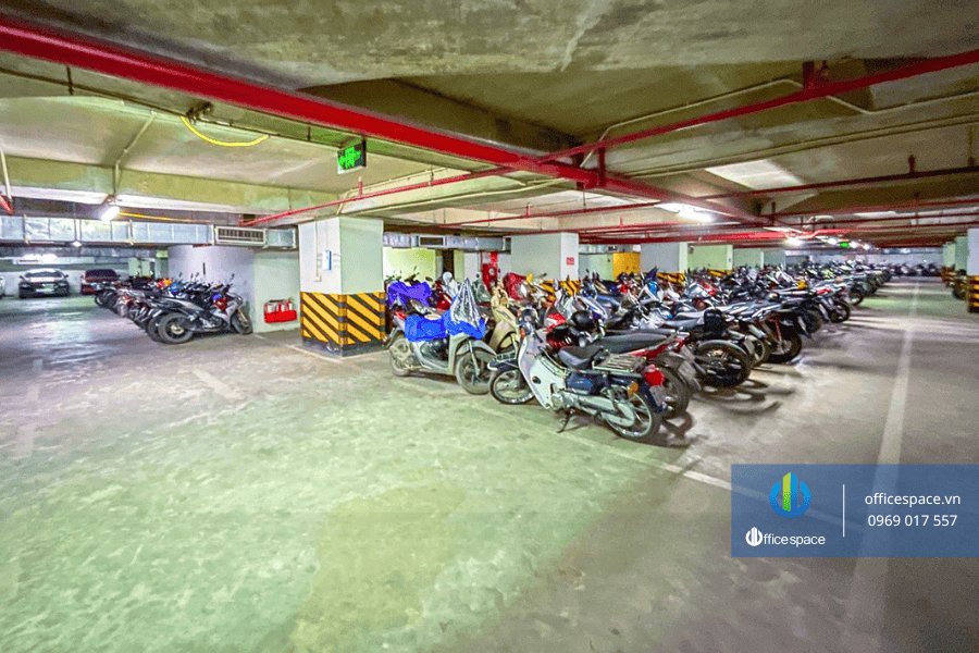 Hệ thống đỗ xe: 02 tầng hầm rộng rãi cùng khu vực khuôn viên xung quanh tòa nhà đáp ứng đủ nhu cầu gửi xe máy và ô tô cho cán bộ nhân viên cũng như khách hàng đến giao dịch.