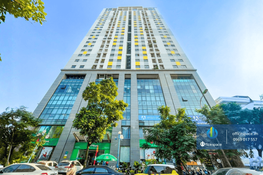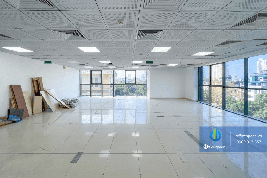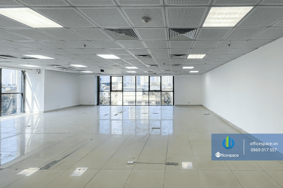 Thiết kế tòa nhà theo phong cách hiện đại với mặt ngoài ốp kính giúp tối ưu ánh sáng tự nhiên, tạo không gian làm việc thoáng đãng. Trần cao tiêu chuẩn, ít cột chắn, thuận tiện cho doanh nghiệp bố trí phòng ban, khu làm việc chung hoặc phòng họp linh hoạt theo nhu cầu.