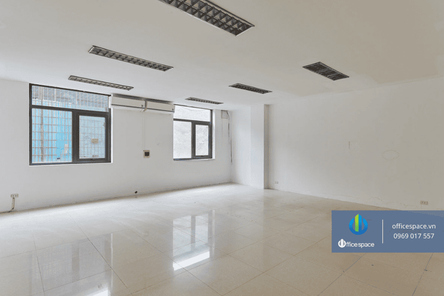 Trần cao, hệ thống chiếu sáng tiêu chuẩn văn phòng, mang lại môi trường làm việc chuyên nghiệp và thoải mái.