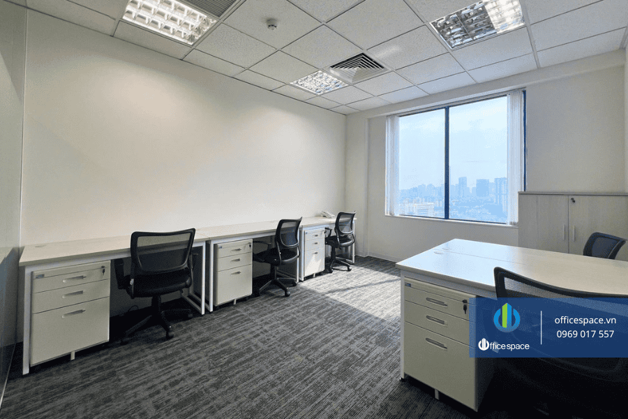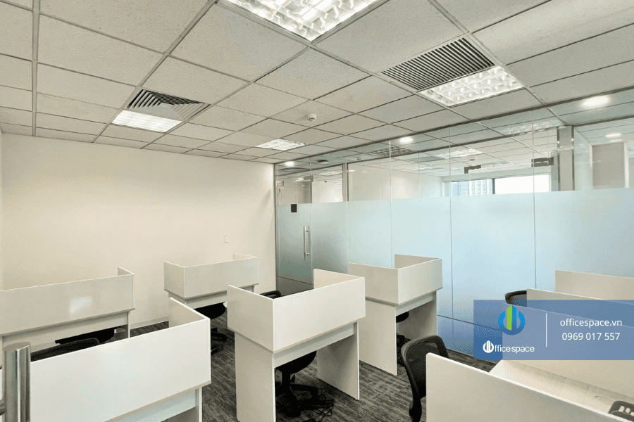 Hệ thống bàn ghế, tủ tài liệu, vách ngăn đều được đồng bộ, đảm bảo tính thẩm mỹ và sự chuyên nghiệp. Doanh nghiệp chỉ cần mang theo máy tính và có thể bắt đầu làm việc ngay mà không cần đầu tư thêm chi phí setup ban đầu.