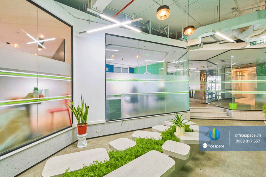 Không gian được chia thành nhiều khu vực linh hoạt, đáp ứng đa dạng nhu cầu sử dụng của doanh nghiệp: