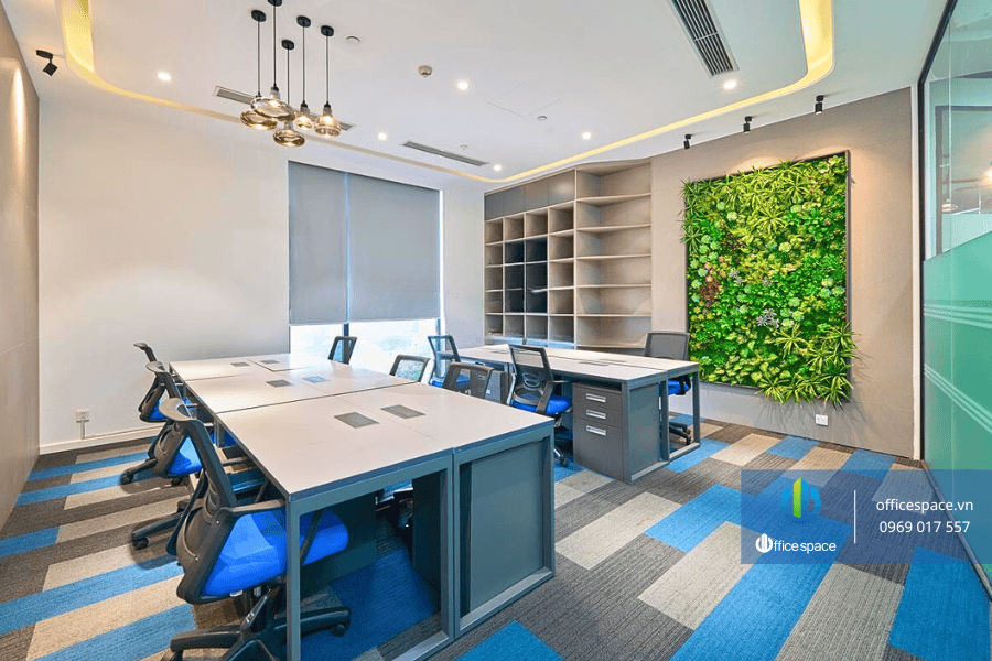 Toàn bộ văn phòng đều được trang bị sẵn nội thất cao cấp, bao gồm bàn ghế công thái học, tủ tài liệu, hệ thống đèn chiếu sáng tiết kiệm năng lượng và điều hòa trung tâm. Hệ thống mạng internet tốc độ cao và các thiết bị văn phòng như máy in, máy photocopy, máy scan… cũng được trang bị sẵn, giúp doanh nghiệp bắt đầu vận hành ngay mà không tốn thêm chi phí đầu tư ban đầu.