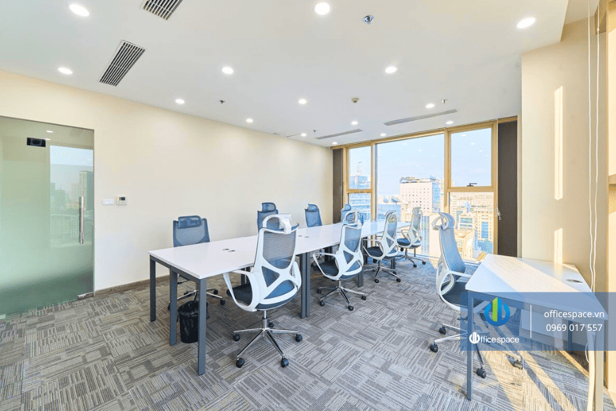 – Không gian làm việc: Văn phòng riêng, chỗ ngồi chung (coworking), phòng họp hiện đại.